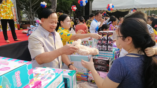 และมอบของขวัญให้กับเด็กนักเรียน ซึ่งมีหน่วยงานภาครัฐเอกชนเปิดซุ้มแจกของรางวัลให้กับเด็ก