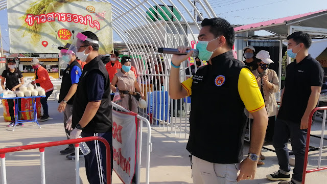 ในช่วงการแพร่ระบาดของไวรัสโควิด 19 ด้านนายอำเภอศรีราชา สาธารณสุข และเจ้าหน้าที่ตำรวจ ร่วมดูแลความปลอดภัย