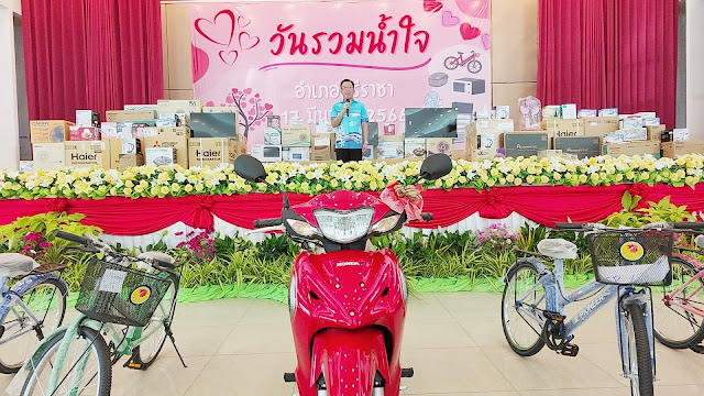 จัดงานวันรวมน้ำใจชาวอำเภอศรีราชาขึ้น เพื่อที่จะรับบริจาคเงินและสิ่งของ